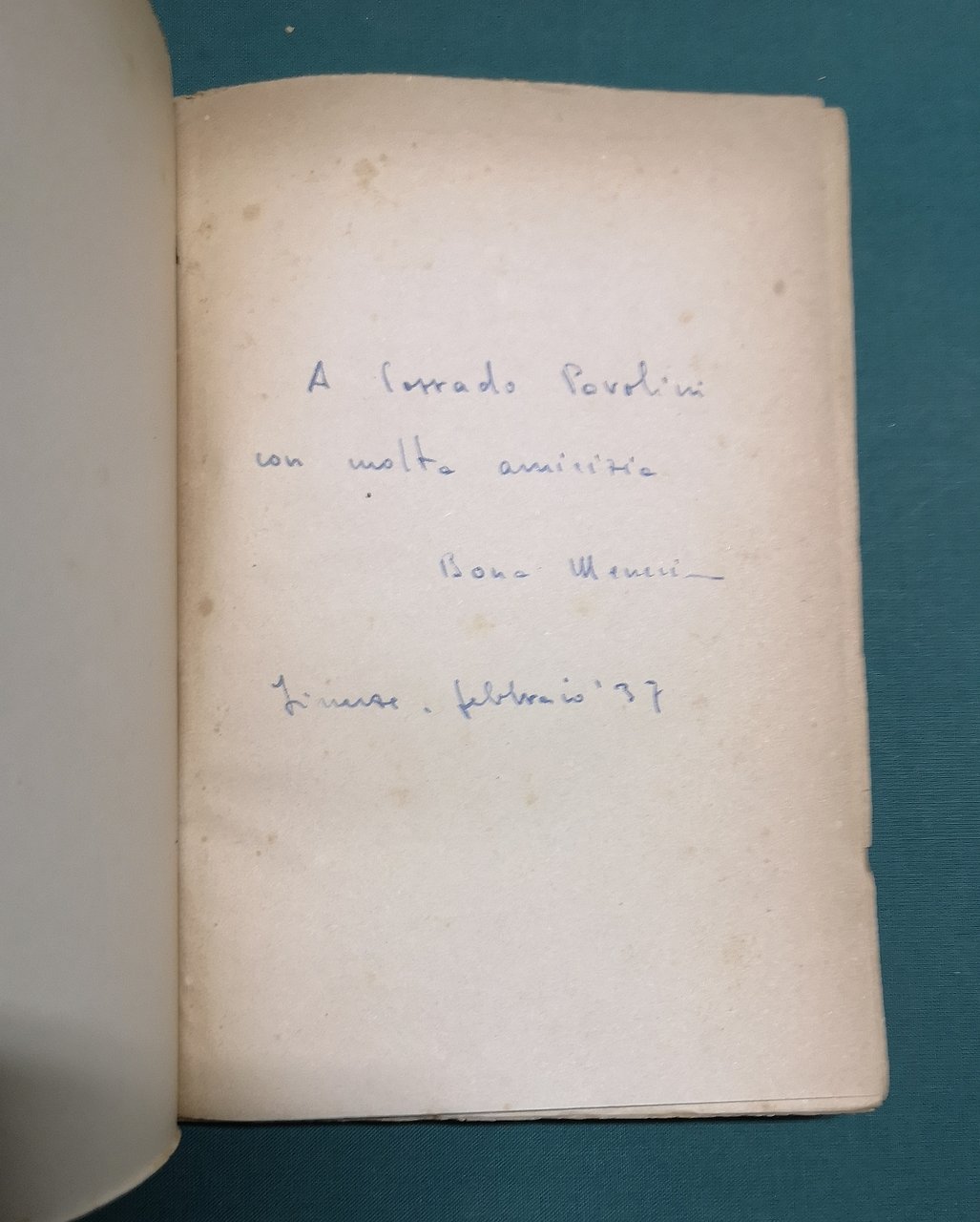 >in-16, pp. 166, broch. Ediz. originale. Esempl. con dedica autografa a C. Pavolini. In buono stato, con lievi difetti e bruniture alla brossura.