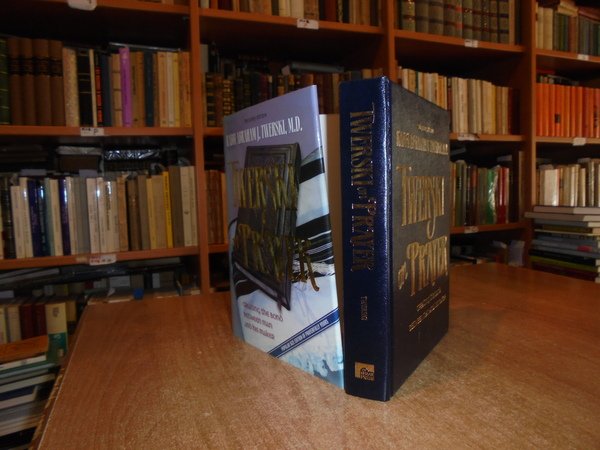 The Fishof Edition. Rabbi Abraham J. Twershy. Brooklyn, Shaar Press, 2006. TWERSKI on PRAYER greating the bond between man and his maker. Popular size edition of prayerfully yours. In-8°, pelle edit. bleu e oro, sovracopertina ill. a col. 505 pp. Come nuovo. Uff. stanzetta mob. sinistra II - 5 carc.