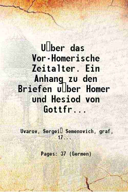 U?ber das Vor-Homerische Zeitalter. Ein Anhang zu den Briefen u?ber Homer und Hesiod von Gottfried Hermann und Friedrich Creuzer . 1821
