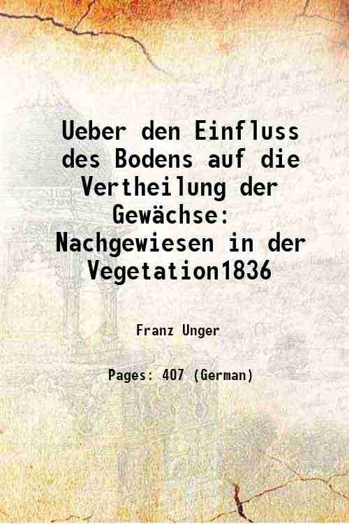 Ueber den Einfluss des Bodens auf die Vertheilung der Gew‰chse Nachgewiesen in der Vegetation1836 1836 | Rare and modern books | Franz Unger
