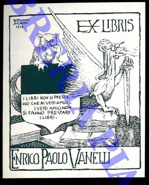 Un foglietto tipografico, per Enrico Paolo Vanelli (I libri non si prestano che ai veri amici. I veri amici non si fanno prestare i libri), cm. 9,5 x 7,5.