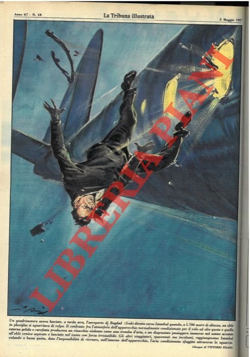 Un quadrimotore aveva lasciato, a tarda sera, l'aeroporto di Bagdad (Irak) diretto verso Istanbul quando, a 5.700 metri di altezza, un oblò in plexiglass si squarciava di colpo.un disgraziato passeggero immerso nel sonno accanto all'oblò veniva aspirato e lanciato nel vuoto con forza irresistibile.