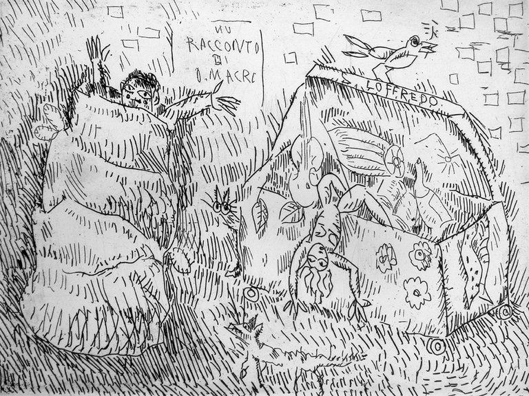 Un sacco d'uomo. Acquaforte originale di Silvio Loffredo.
