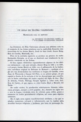 Un Siglo de Teatro Valenciano. Materiales para su estudio.