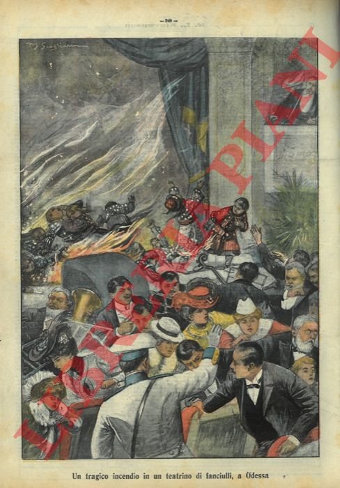 Un tragico incendio in un teatrino di fanciulli, a Odessa.