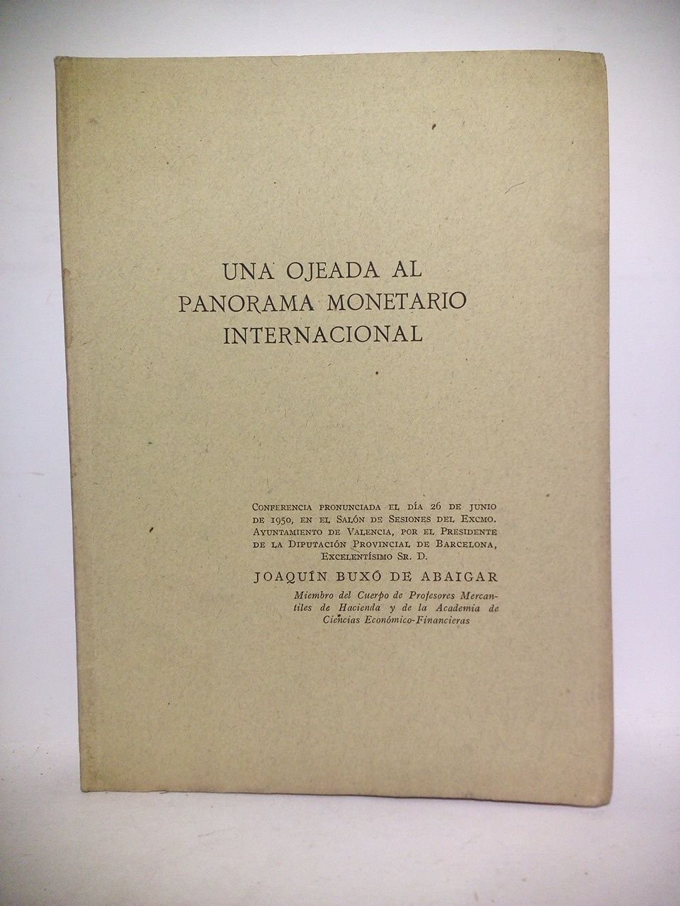 Una ojeada al panorama monetario internacional. (Conferencia pronunciada el día 26 de Junio de 1950, en el Salón de Sesiones del Excmo. Ayuntamiento de Valencia) / por el Presidente de la Diputación Provincial de Barcelona, Excmo. Sr. D. Joaquín Buxó de Abaigar
