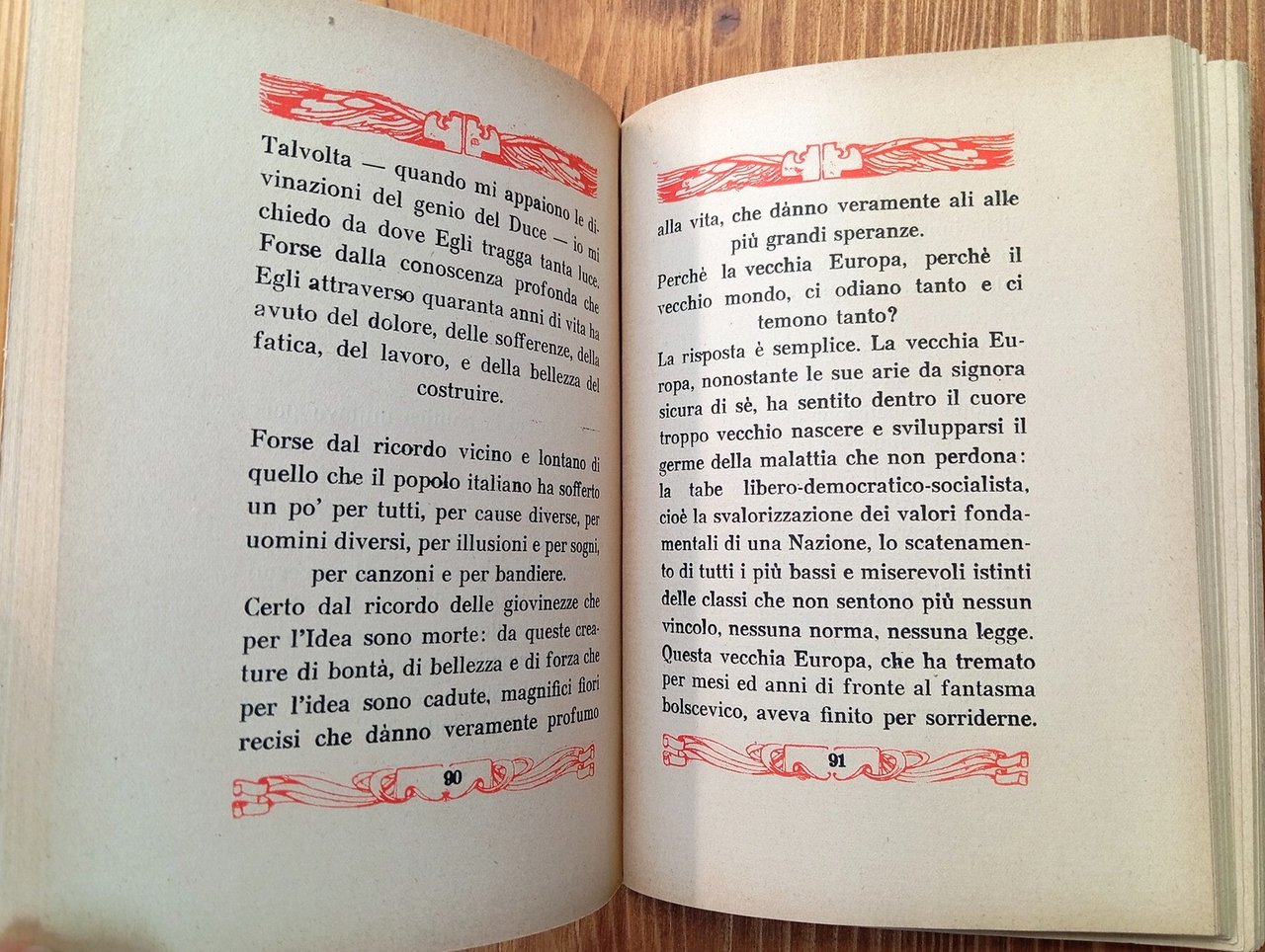 Edizione originale, XX° migliaio - Brossura editoriale di 195 pagine con bei fregi in rosso di Duilio Cambellotti (erroneamente creditato "Gambellotti"). Prefazione di Benito Mussolini datata 1927, da cui si desume la stampa del libro; ciò trova riscontro anche in una firma di possesso alla prima carta ("Roma, agosto 1927 - anno V"). Lacuna alla testa del dorso, ordinari segni del tempo, nel complesso esemplare in buone condizioni.