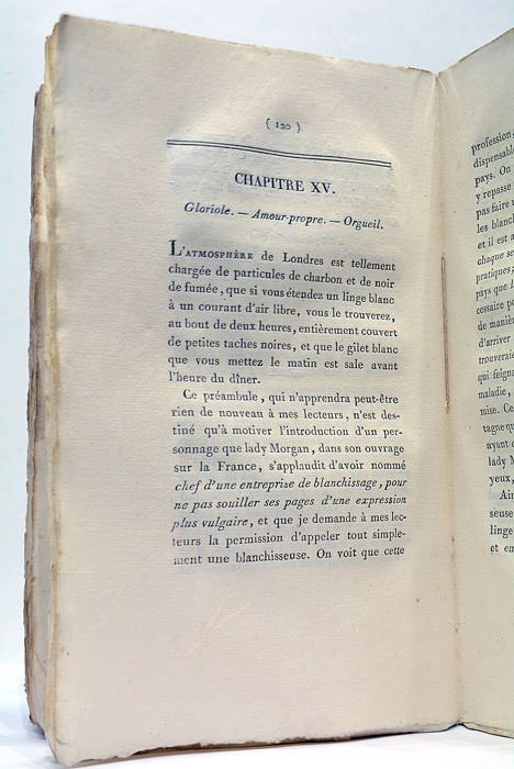 1 feuillet. 292 pages. (22x13 Cm). Broché. Couverture muette de l’époque. Plis et petits accrocs, Recueil de réflexions sur la société anglaise de l’époque, et sur le rôle de l’Angleterre sur la scène internationale. Un chapitre intitulé “Esclavage noir et blanc” discute notamment la question de l’esclavage dans les colonies, faisant valoir divers arguments à l’encontre des “amis des noirs”. Quelques traces de mouillures. Assez bon exemplaire non rogné.