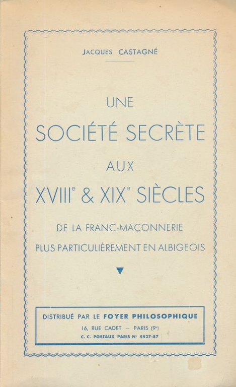 Une société secrète aux XVIIIe & XIXe siècles. De la Franc-maçonnerie plus particulièrement en Albigeois