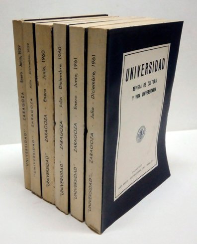 Universidad. Revista de Cultura y Vida Universitaria. Director: Fernando Solano Costa. Años XXXVI-XXXVII y XXXVIII. [Contiene, íntegro: Fray José Antonio de Hebrera y Esmir: Jardín de la Eloquencia. Edición y prólogo de Félix Monge, y ,entre otros textos, Angel Canellas López: Alfonso el Magnánimo y Aragón; Joaquín Bastero Archanco: El futuro Código Penal Español; Fernando Solano: El Tratado de Cateau-Cambresis (1559); Carlos Sanchez del Río y Peguero: La falacia endémica del Derecho y la urgencia de seguir nuevois rumbos para su cultivo ante las precisiones de la era técnica naciente; Luis García Arias: El "Colonialismo"en los iurisinternacionalistas españoles del siglo XVI; Carlos E. Corona: Fernando el Católico y la nobleza castellana