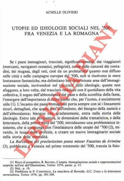 Utopie e ideologie sociali nel '500: fra Venezia e la Romagna.