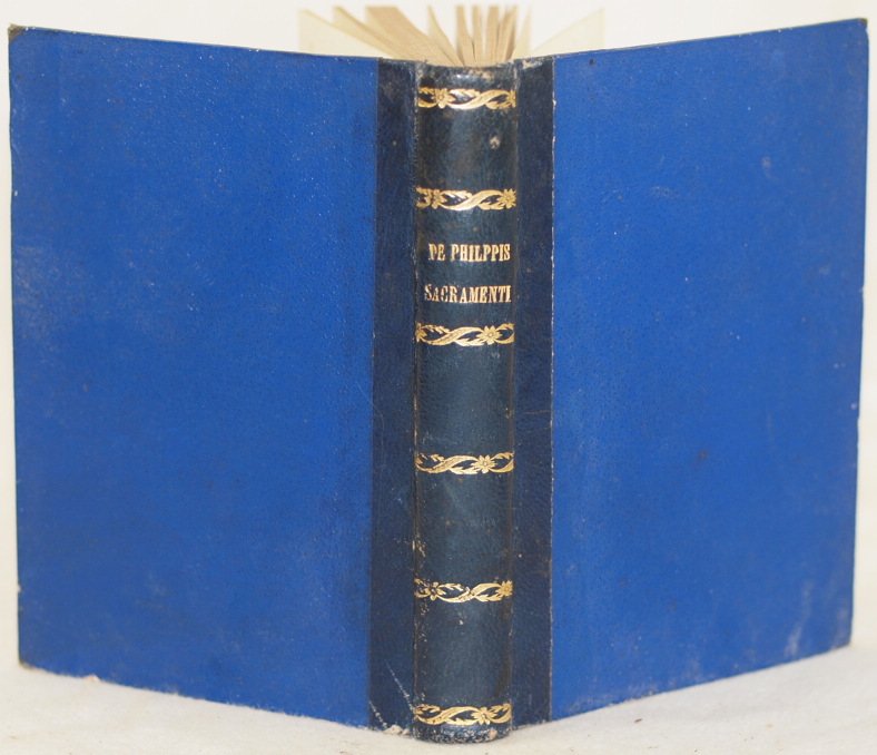 In 24. Dim. 14,5x11 cm. Pp. 256. Bella edizione del 1880 di questa operetta religiosa sulla confessione e il sacramento della penitenza scritto da Salvatore de Filippis (secolo XIX). Tra gli argomenti trattati: censure, scomunica, sospensione, interdizione, peccati, Simonia, giuramento e blasfemia, omicidio, suicidio e duello, avarizia e usura, sacramenti ecc. Bella copertina in mezza pelle con titolo e decorazioni in oro al dorso. In ottime condizioni. Copertina in mezza pelle con titolo e decorazioni in oro al dorso in ottime condizioni generali con lievi usure ai margini e dorso. Legatura in ottime condizioni. All'interno le pagine si presentano in ottime condizioni con rare fioriture. Beautiufl edition of 1880 of this religious work about confession and sacrament of penitence written by Salvatore de Filippis (century XIX). Between the issue treated: censorship, scommunication, sospension, interdition, sins, Simony, jury and blasphemy, murder, suicide and duel, avarizia e usura, sacraments ecc. Beautiful half leather coeval cover with golden title and decorations in the spine. In very good conditions. Half leather cover with golden title and decorations in the spine in very good general conditions slightly worn in the edges and spine. Binding in very good conditions. Inside pages are in very good conditions with occasional foxings.