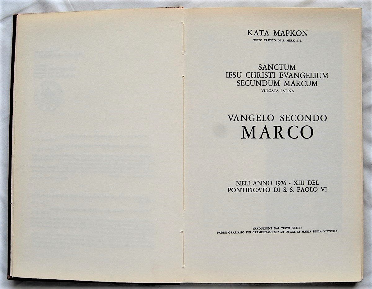 VANGELO SECONDO MARCO. NELL'ANNO 1976. XIII DEL PONTIFICATO DI S.S. PAOLO VI. TRADUZIONE DAL TESTO GRECO: PADRE GRAZIANO DEI CARMELITANI SCALZI DI SANTA MARIA DELLA VITTORIA.