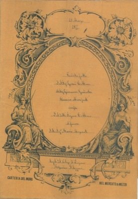 Loiano, 1877, 25 marzo, rogito originale di 12 pp, in cartella con bella cornice xilografica, timbro a secco, timbro e firma del notaio Alessandro Filippini di Loiano