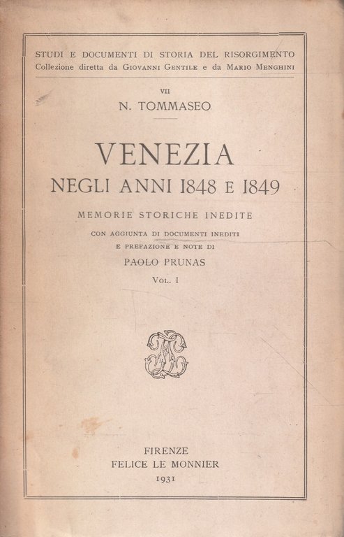 Venezia negli anni 1848 e 1849 Memorie storiche inedite Vol. 1