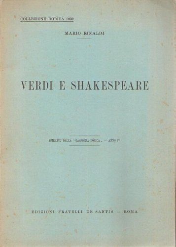 Verdi e Shakespeare ( estratto dalla Rassegna Dorica anno IV )