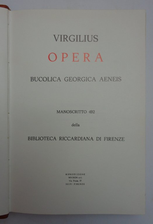 VERGILIUS OPERA. BUCOLICA, GEORGICA, AENEIS. Maniscritto 492 della Biblioteca Riccardiana di Firenze.