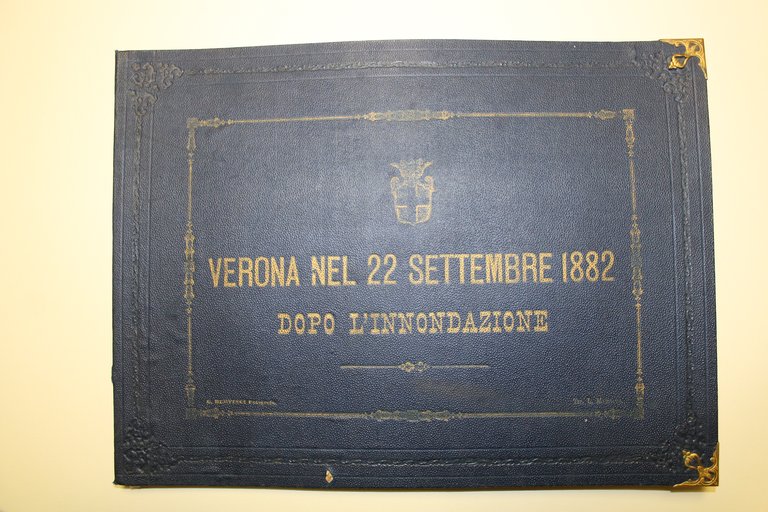 In folio oblungo, mm 292x400. Raccolta di 15 fotografie di formato mm 150x220. Legatura editoriale in percallina scura con titolo in oro al piatto anteriore racchiuso da un elegante fregio. Rarissimo album fotografico che testimonia i danni causati dall'inondazione dell'Adige nel 1882. E' questa una delle due maggiori opere del fotografo "garibaldino", di grandissima importanza storica e rarissimo, completo e in questo stato di conservazione. La prima foto raffigura il re Umberto in visita alla devastazione cittadina con la delegazione dei notabili veronesi. Le altre belle raffigurano il ponte Nuovo crollato, il ponte Pignolo, via seghe S. Tomaso, via Binastrova, Castelvecchio, S. Stefano, Via Seminario, l'Adige a palazzo Canossa ed altre.<BR>Giuseppe Bertucci (1844 - 1926) è da sempre ricordato come il fotografo che documentò gli effetti della grande esondazione dell'Adige avvenuta a Verona nel settembre dell'anno 1882. Nacque a Bardi (Parma). Figlio di un notaio, la sua fu una famiglia caratterizzata da uno strenuo patriottismo in anni di dominazione austriaca. Il nonno, anch'egli notaio, subì nel 1882 una condanna a dieci anni di carcere, a causa delle sue idee liberali avverse al governo austriaco. Giuseppe Bertucci abbandonò gli studi a soli 15 anni per arruolarsi nelle truppe garibaldine. Partecipò con entusiasmo ad azioni di guerra nelle campagne del 1859, del 1860-1861 e del 1866, meritandosi una medaglia al valore. Le imprese militari lo condussero poi a Caffaro, a Bazzecca, Mentana e infine anche alla presa di Roma avvenuta nel 1870. Per circa dieci anni della sua vita, Bertucci si dedicò dunque alla causa garibaldina. Fino a questo punto, nella sua vita ancora non pare esservi traccia dell'attività che lo rese famoso in seguito, vale a dire quella di fotografo. Nel 1872 si sposò a Guastalla con Anna Achilini e dieci anni dopo, nel 1882, successivamente a una parentesi mantovana, realizzò quella che forse resta la più importante campagna fotografica della sua vita, quella relativa alla grande esondazione del fiume Adige a Verona, dove da poco si era appunto trasferito. Il lavoro gli venne al tempo commissionato dallo stesso Comune di Verona e fu volto a documentare gli effetti distruttivi prodotti dallo straripamento delle acque del fiume nelle zone del centro storico cittadino. In merito si legge in un articolo de L'Adige datato lunedì 2 ottobre 1882: "Tali vedute pel gusto con cui sono riprodotte e per la precisione d'ogni particolare, specialmente nel movimento dell'acqua, meritano i sinceri elogi". Lo Studio Fotografico di Giuseppe Bertucci a Verona era collocato proprio in prossimità delle rive dell'Adige, in stradone San Tommaso al civico 23, e fu anch'esso gravemente danneggiato dall'esondazione del fiume tra il 14 e il 17 settembre 1882. Pochi giorni dopo, il 27 settembre, a Verona giunsero in visita il Re Umberto I e il fratello Amedeo Duca d'Aosta. Entrambi furono fotografati proprio da Giuseppe Bertucci, impegnato a realizzare la documentazione fotografica dei danni riportati dal ponte Nuovo, tra le zone maggiormente colpite dalla piena. Furono in seguito proprio gli stessi Re Umberto e il Principe Amedeo ad attribuire a Bertucci, quale segno di riconoscimento ufficiale per il suo operato e "in onore della sua arte fotografica", due spille d'oro. Successivamente, tra il 1890 e il 1894, realizzò un'altra importantissima campagna fotografica, ancora una volta strettamente connessa al fluire delle acque dell'Adige. Si trattava della documentazione dei lavori di costruzione dei muraglioni che andarono ad arginare il corso del fiume per regolarizzarne l'alveo nel tratto urbano. Nel 1926 il "fotografo garibaldino" Giuseppe Bartolomeo Bertucci morì il 5 settembre nella sua casa di Verona in via Santa Maria in Chiavica al civico 4. Il suo Studio fotografico restò in funzione fino al 1960 grazie ai figli, Marco, Elvezia ed Ernesto che ne proseguirono l'attività, prima di cedere il patrimonio culturale prodotto dal padre nel corso della sua vita, alla Biblioteca Civica di Verona che tuttora conserva e tutela il ricco archivio d'immagini.<BR>