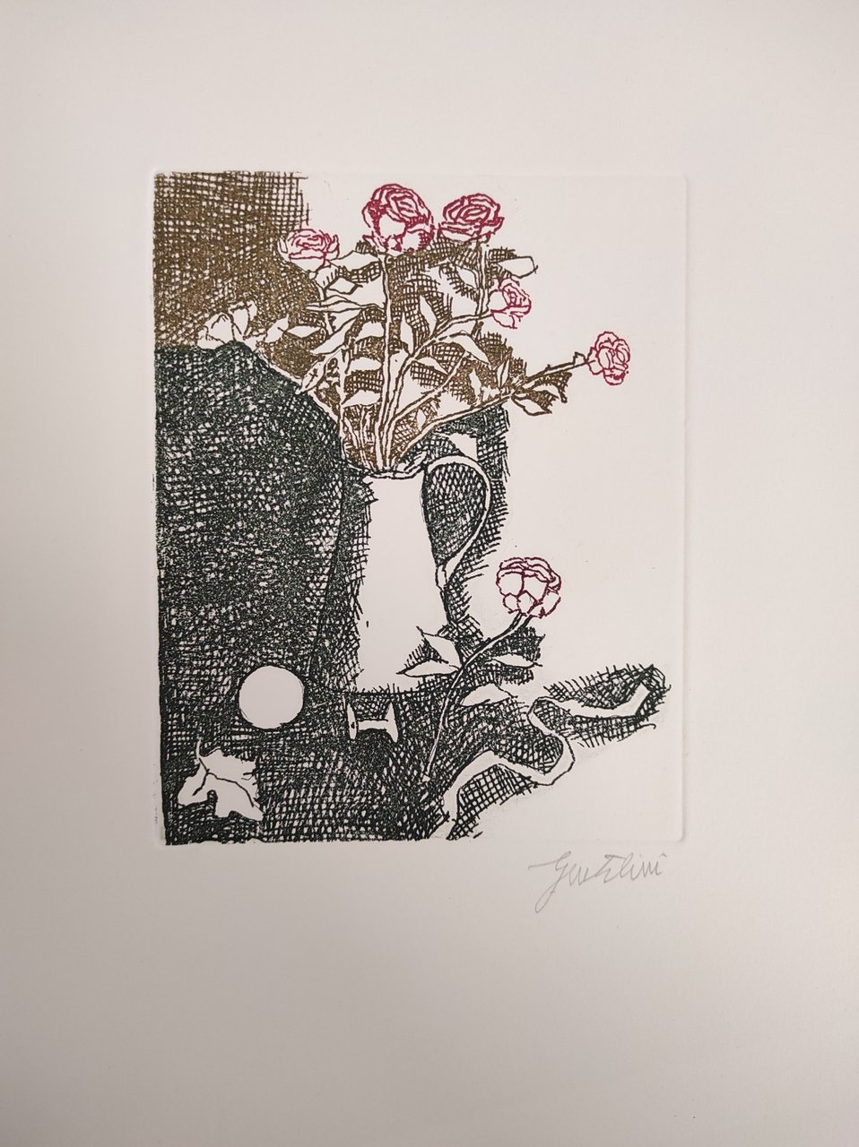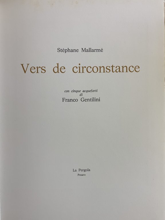 Questa edizione composta dai versi di Stephane Mallarmè illustrati da cinque acqueforti a colori di Franco Gentilini, numerate e firmate, è stata realizzata in 140 esemplari su carta a mano della Cartiera Magnani di Pescia. Le copie sono state così numerate: novantanove da 1/99 a 99/99, undici ad personam da 100 a 110, trenta da I a XXX. Il ns es. reca il numero 67/99. 5 incisioni all'acquaforte f.t. firmate a matita di Franco Gentilini, protette da velina. in quarto leg. bross., titolo in oro al dorso pp. 44 (altre non numerate) Buono (Good) Buon es..