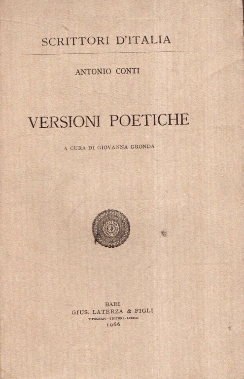 Versioni poetiche. Antonio Conti. Laterza (1966)