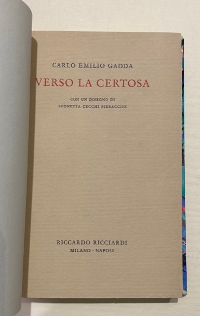 In-8°, pp. VIII, 164, (2), legatura in mezza pelle, titolo in oro al dorso, brossura editoriale conservata all'interno. Prima edizione. Raccolta di racconti e prose, alcune inedite, altre riprese e in alcuni casi variate dalle «Meraviglie» e «Gli anni». Gambetti Vezzosi, p. 216