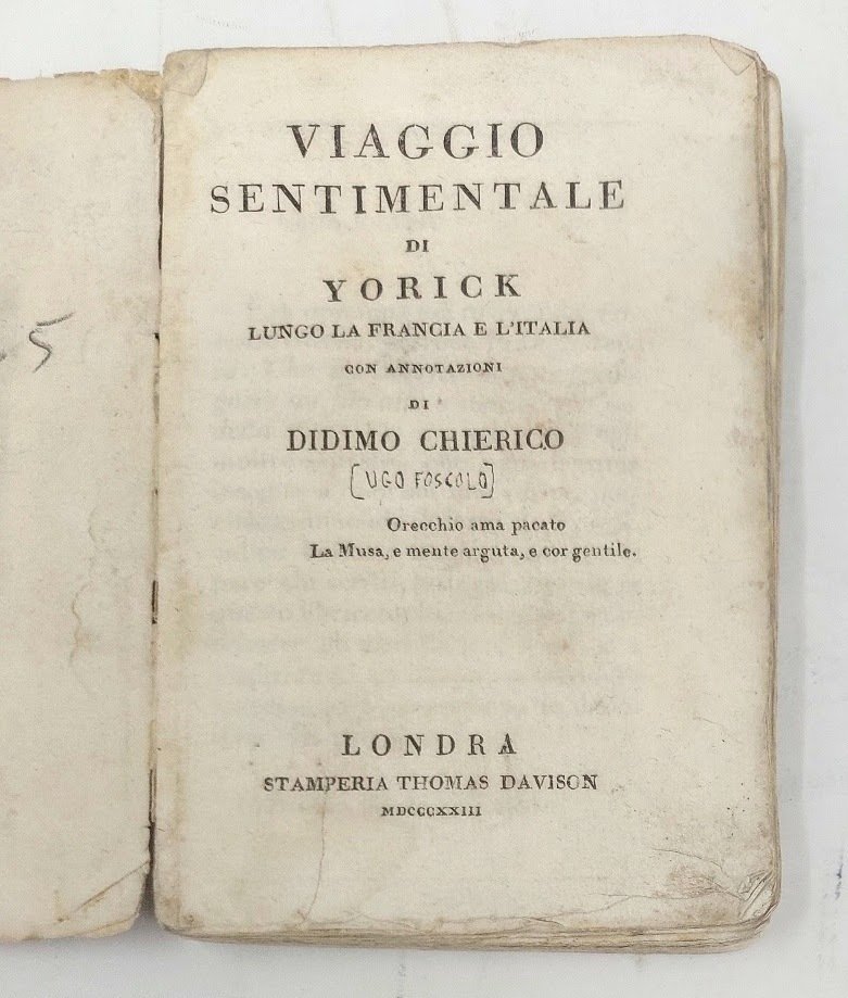 Viaggio Sentimentale di Yorick lungo la Francia e l'Italia, con annotazioni di Didimo Chierico.