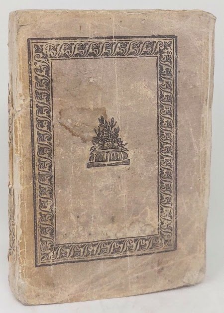 >in-16, pp. (4), 219, broch. editoriale con bordura in silografia sui piatti e fregio figurato al centro della stessa (dorso mancante). Edizione non comune, ristampa dell'originale di Pisa 1813. Sulla pagina di titolo appare il motto "Orecchio ama pacato. La Musa, e mente arguta, e cor gentile". Esemplare a pieni margini, con barbe, non fresco. Ottolini, n.49. Raccolta Foscoliana Acchiappati, n.113. Manca alla Foscoliana di Treviso.