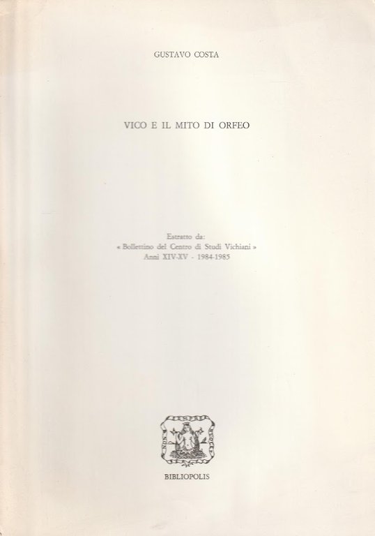 Vico e il mito di Orfeo. Estratto da: "Bollettino del Centro Studi Vichiani" Anni XIV-XV