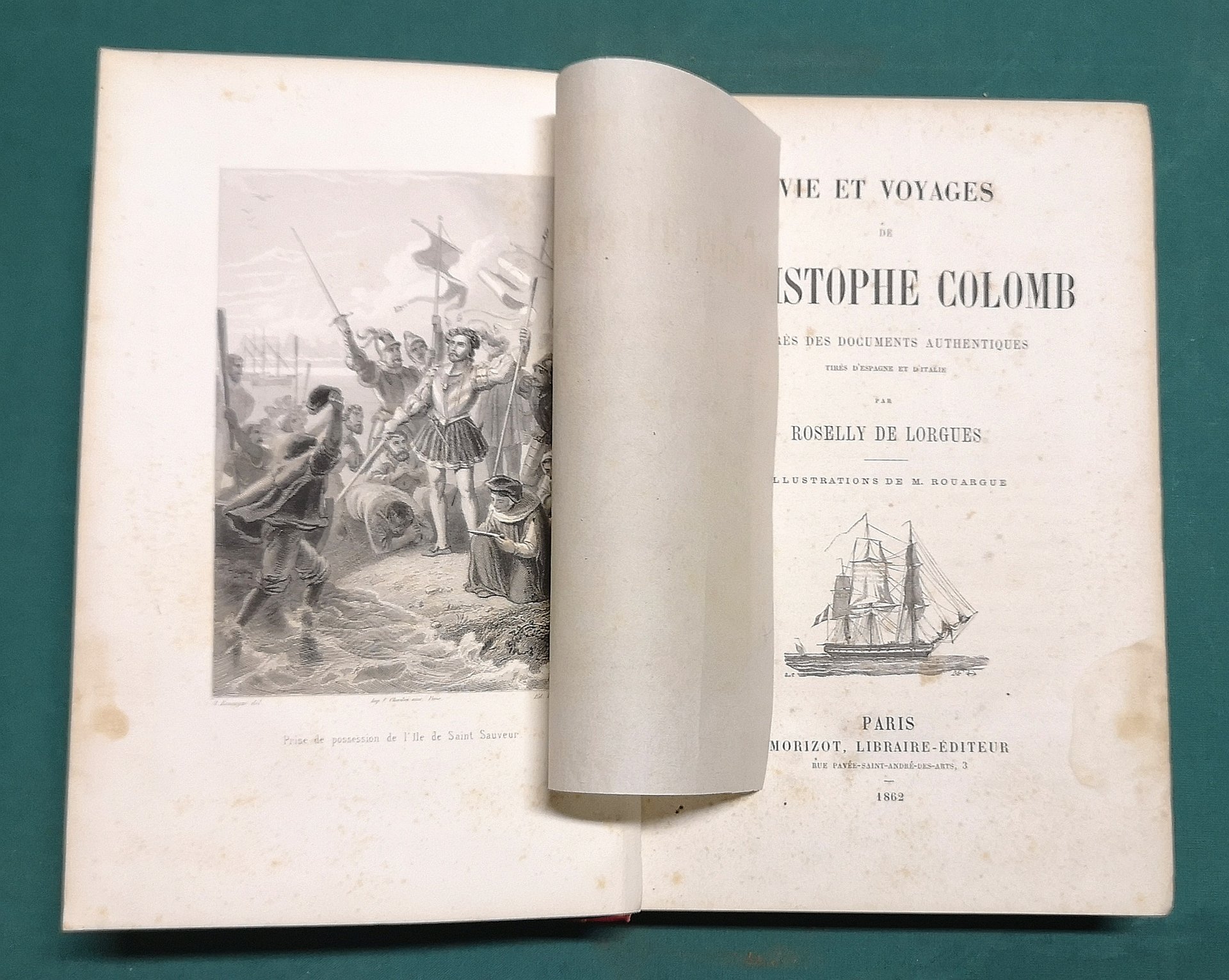 Vie et Voyages de Christophe Colomb d'après des documents authentiques tirés d'Espagne et d'Italie. Illustrations de M. Rouargue.