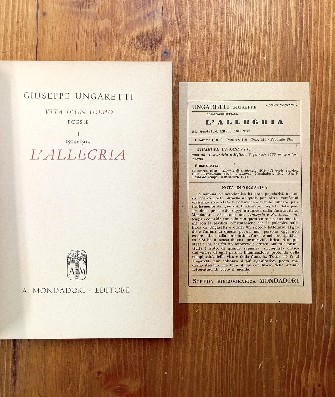 Collana "I poeti dello Specchio", prima edizione così - Brossura editoriale di 119 pagine. Conservata la schedina bibliografica. Dorso brunito e con segni d'uso, peraltro buona copia dalla paginazione piuttosto fresca e godibile.