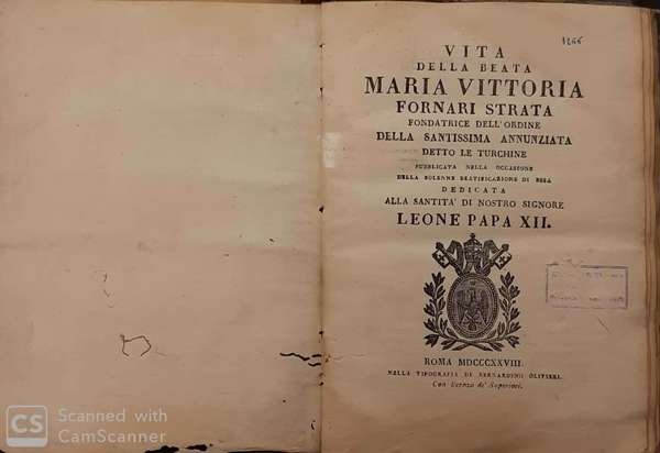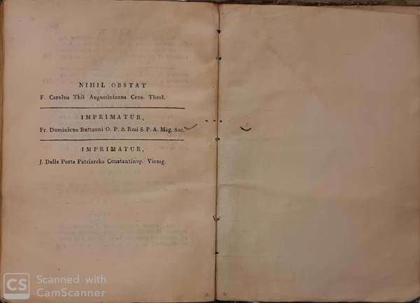 In 8°, m. perg. , pp. XVI + 368. Front. fig. Le pp. 1/2 e 3/4 presentano una macchia, quasi al centro, di precaria identificazione, che lede il testo, mentre le pp. 71/72 e 73/74 sono sciolte. T. A.
