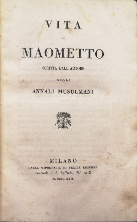 VITA DI MAOMETTO SCRITTA DALL'AUTORE DEGLI ANNALI MUSULMANI.