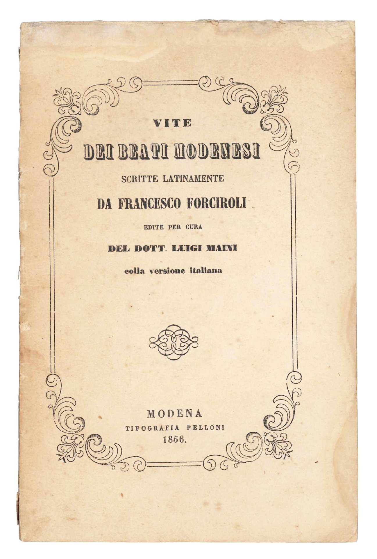 Vite dei beati modenesi scritte latinamente da Francesco Forciroli. Edite per cura del dott. Luigi Maini colla versione italiana. | Rare and modern books | FORCIROLI, Francesco