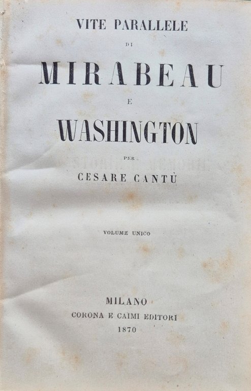 Vite parallele di Mirabeau e Washington | Rare and modern books | Cantù Cesare