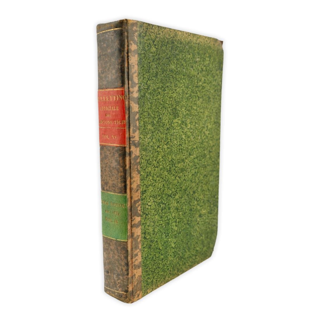Terza Raccolta (dal 1832) delle Leggi e Decreti del Canton Ticino - Volume II Bullettino Officiale della Repubblica e Cantone del TicinoVol XV - Dal 1 Luglio 1832 al 30 Giuno 1835 Editore: Dalla Tipografia e la Libreria Patria MDCCCXXXV (1835) Pagine: 335Dimensioni: 13 x 21 cmCopertina: Cartonato Ottime condizioni generali, come da immagini.