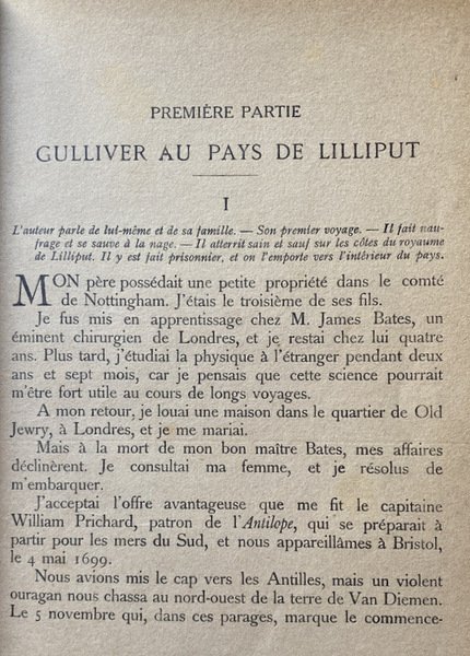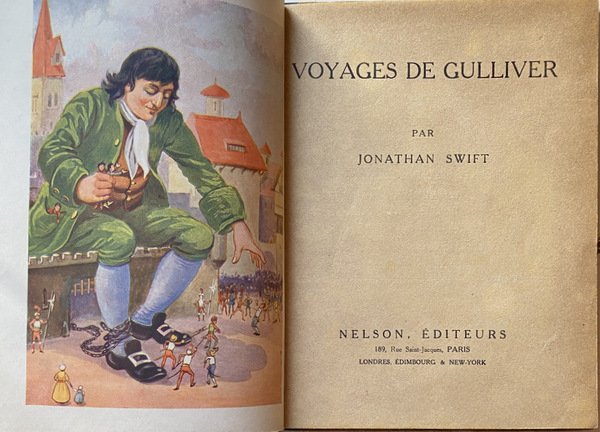 Soggetti/Subjects/Sujets: Voyages imaginaires, Romans, Nouvelles, Pour la jeunesse, Fiction, Gulliver's Travels Collection, The Kingdom of Lilliput, Eighteenth century prose, The most eminent English authors, Brobdingnag, Novels, Plays, Coloured picture book, Lemuel, Fictitious character, Juvenile works, Imaginary, Laputa, Balnibarbi, Luggnagg, Glubbdubdrib, Japan, Antilles, Antilope, Ile volante, Londres, Old Jewry, Houyhnhnms, Livres anciens, XXe Siècle, 1920-1929, Libri cartonati illustrati per bambini in francese, Favole, Fiabe, Fantasia, Avventura, Classici, Anni Venti, Libri da collezione rari, Collezionismo, Viaggio immaginario, Nani, Giganti, Romanzi, Narrativa, Settecento, Scrittori irlandesi anglosassoni, Letteratura inglese, Satira, Ironia, Inghilterra, Francia settecentesca, Ragazzi, Rarità, Viaggi avventurosi, Successi editoriali, Bestsellers, Lillipuziani, Indie Orientali, Giulio Cesare, Bruto, Omero, Aristotele, René Descartes, Pierre Gassendi, Immortalità, Struldbrug, Eterna giovinezza, Cavalli razionali, Yahoos, Romanzi fantastici satirici, Allegorie, Burocrazia, Distopici, Travels into Several Remote Nations of the World, in Four Parts, Lemuel Gulliver, First a Surgeon, and then a Captain of Several Ships, Prose du XVIIIe siècle, Les auteurs anglais les plus éminents, Brobdingnag, Romans, Pièces de théâtre, Livre d'images en couleurs, Personnage fictif, Œuvres pour la jeunesse, Pour enfants en français, Contes de fées, Fantastique, Aventure, Classiques, Années 20, Livres rares de collection, Voyage imaginaire, Nains, Géants, Écrivains irlandais anglo-saxons, Littérature anglaise, Satire, Ironie, Angleterre, France, XVIIIe siècle, Gars, Raretés, Aventure, Succès éditoriaux, Meilleures ventes, Lilliputiens, Indes orientales, Jules César, Brutus, Homère, Aristote, Immortalité, Jeunesse éternelle, Rationnel chevaux, Fantastiques satiriques, Allégories, Bureaucratie, Dystopies, Children's illustrated hardback books in French, Fairy Tales, Fantasy, Adventure, Classics, Twenties, Rare Collectibles Books, Imaginary Journey, Dwarfs, Giants, Novels, Eighteenth Century, Anglo-Saxon Irish Writers, English Literature, Satire, Irony, England, 18th century France, Guys, Rarities, Adventure travels, Editorial successes, Lilliputians, East Indies, Julius Caesar, Brutus, Homer, Aristotle, Immortality, Eternal youth, Rational horses, Satirical fantasy novels, Allegories, Bureaucracy, Dystopians
