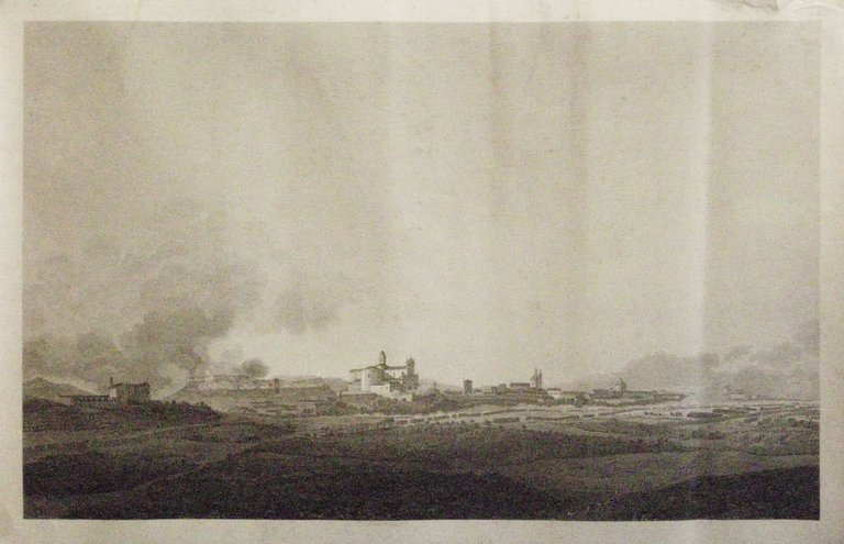 Vue des hauteurs près Castiglione. Deuxième attaque de la division Augereau ; l'ennemi est repoussé. 3 Août 1796. Gravée par Robert de Launey. n. 43.