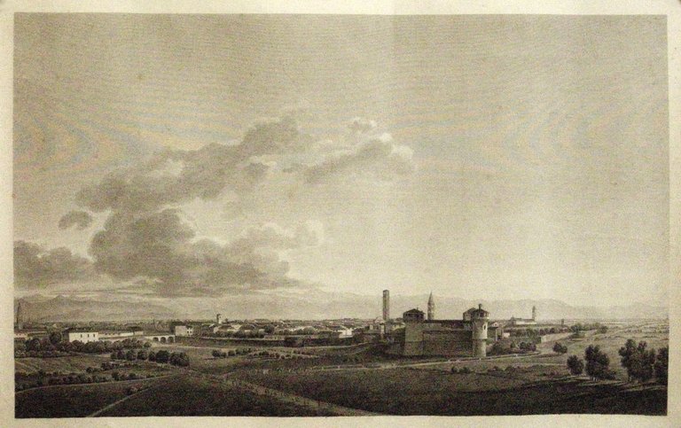 Vue du bourg de Soncino le 24 mai 1796 ; Le Général Kilmaine à la tête de l'avant-garde, s'empare du bourg de Soncino pour effectuer le passage de l'Oglio le 24 mai 1796. n. 40.