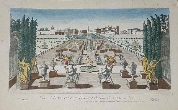 Vue et Perspective du Palais et Jardin du Doge a Venise.