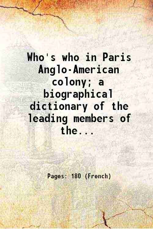 Who's who in Paris Anglo-American colony; a biographical dictionary of the leading members of the Anglo-American colony of Paris, 1905. Founded and ed. by William H. Ingram, B. A. 1905