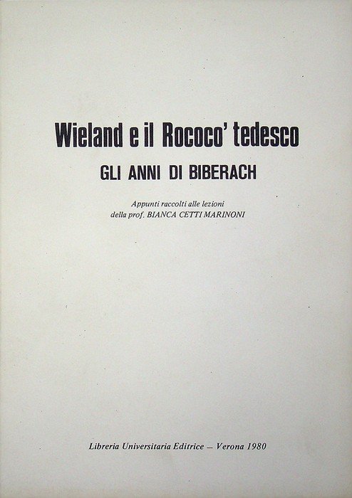 Wieland e il Rococò tedesco: appunti delle lezioni. | Rare and modern books | Cetti Marinoni, Bianca.
