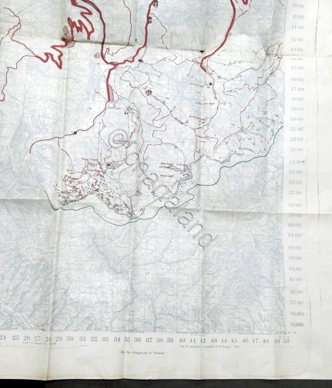 WWI - Carta Geografica Cismon: sistemazione nemica alla data del 10 Ottobre 1918
