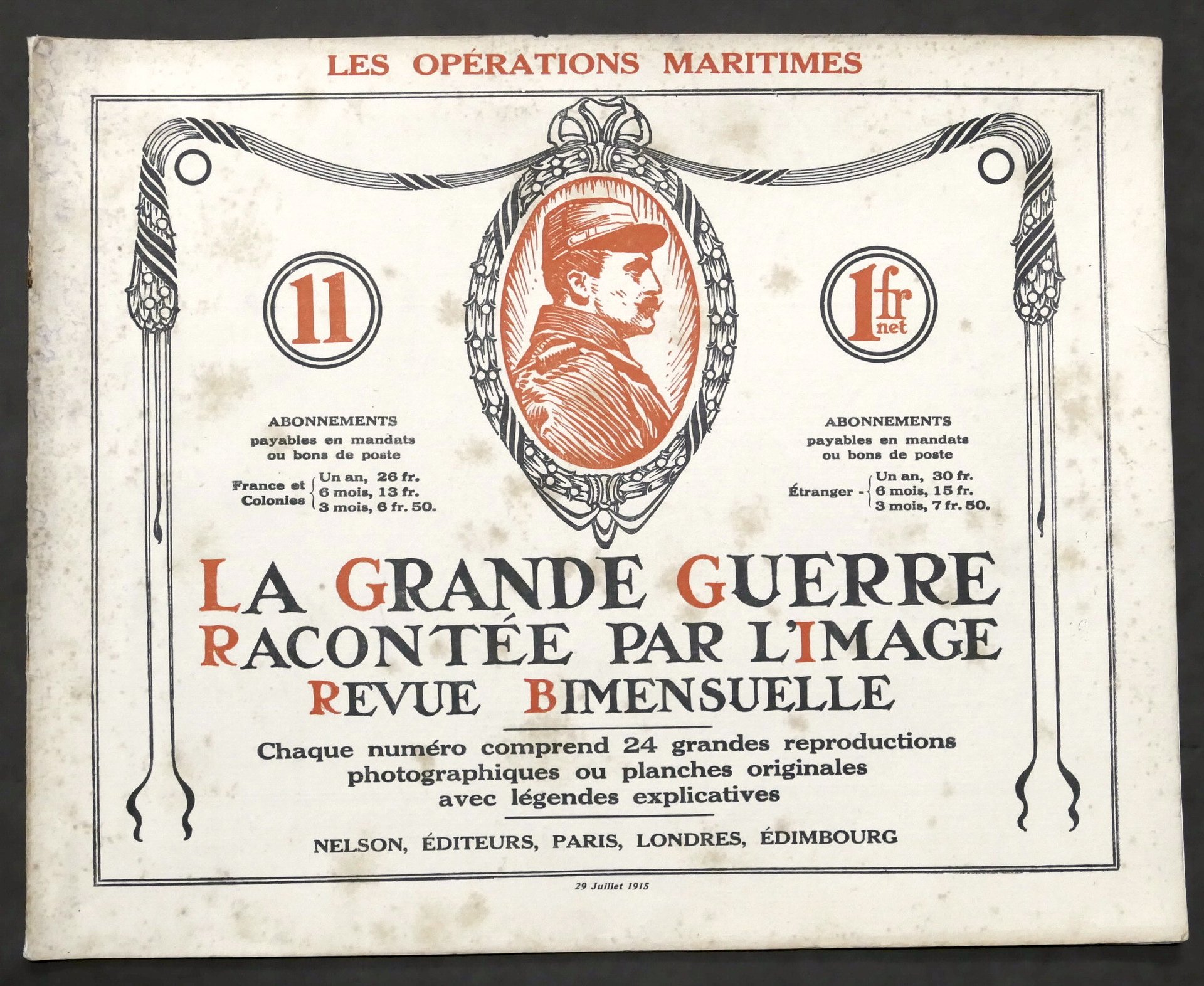 WWI Rivista - La Grande Guerre racontée par l'image - N. 11 - Luglio 1915 Les Operations Maritimes 24 tavole illustrate con didascalie in francese. Copertina morbida Condizioni generali molto buone. Copertina come da foto.