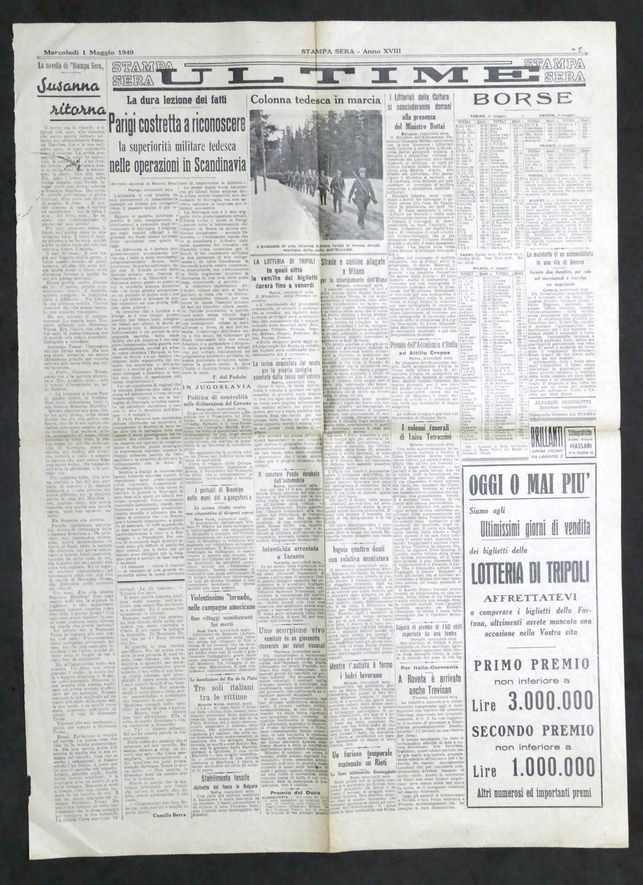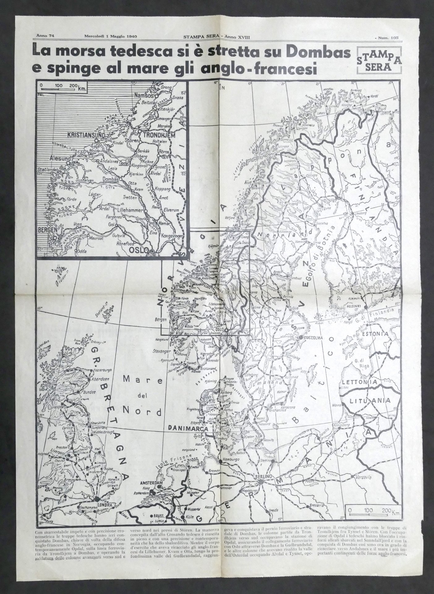 WWII Stampa Sera - maggio 1940 - Morsa tedesca si è stretta su Dombas (Norvegia)
