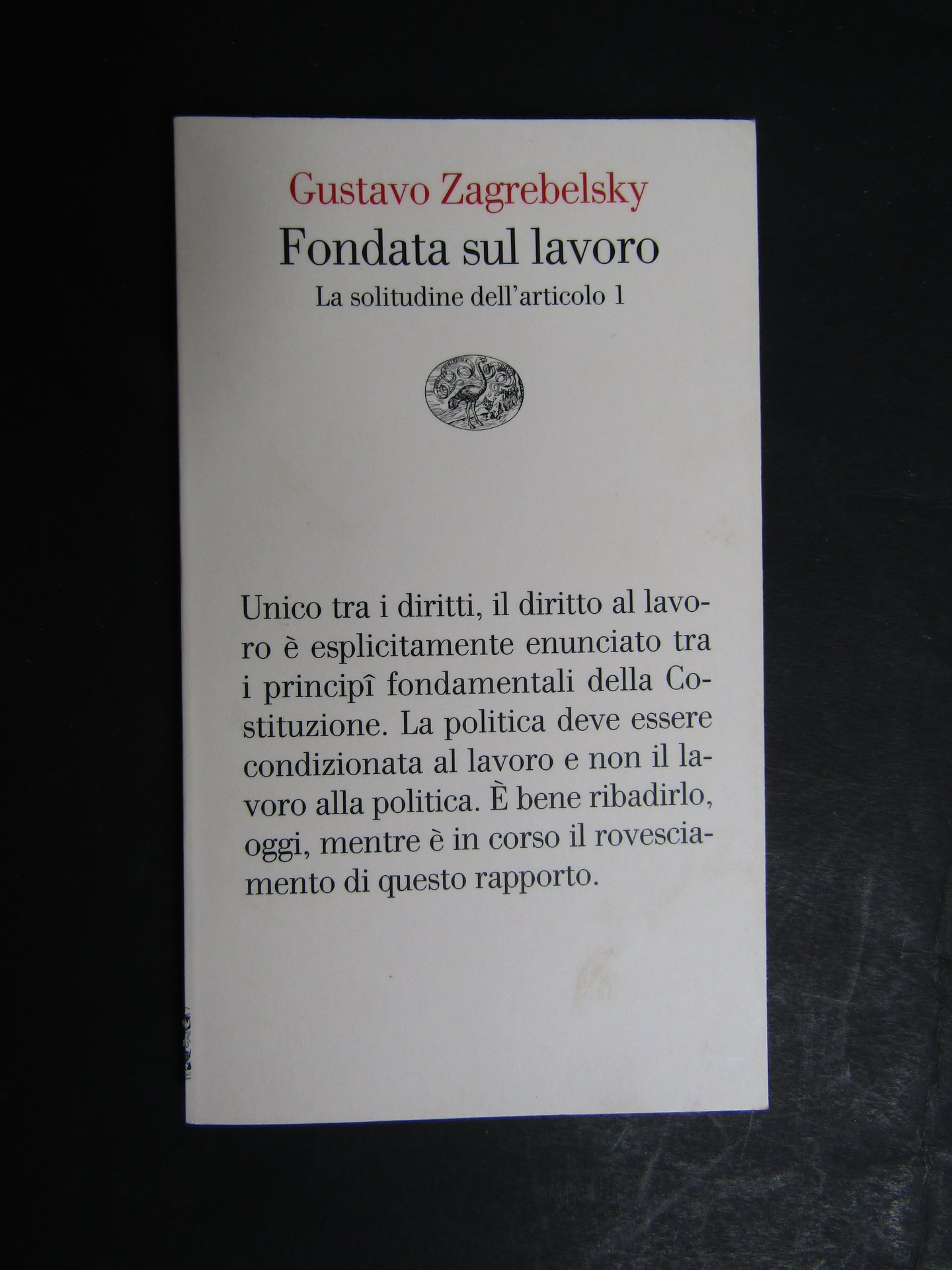 Zagrebelsky Gustavo. Fondata sul lavoro. Einaudi. 2013-I