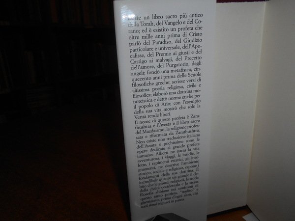 ARNALDO ALBERTI. Casale Monferrato, Edizioni Piemme, 1998. ZARATHUSHTRA. La vita e gli insegnamenti del primo grande saggio dell' umanità. In-8° piccolo, tela edit. con sovracopertina ill.a col. 301 pp. Come nuovo. Neg. mob. bianco nuovo comput.