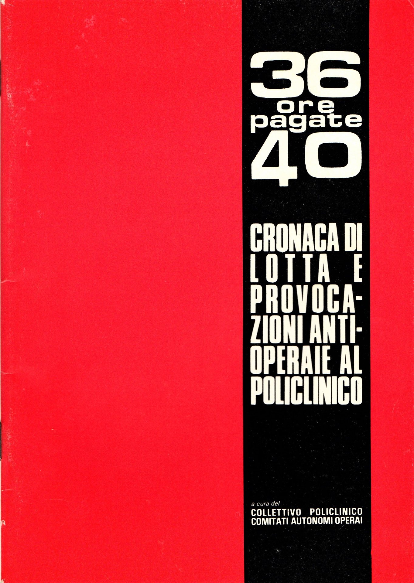 36 ore pagate 40. Cronaca di lotta e provocazioni antioperaie al Policlinico | Rare and modern books | Collettivo Policlinico. Comitati Autonomi Operai