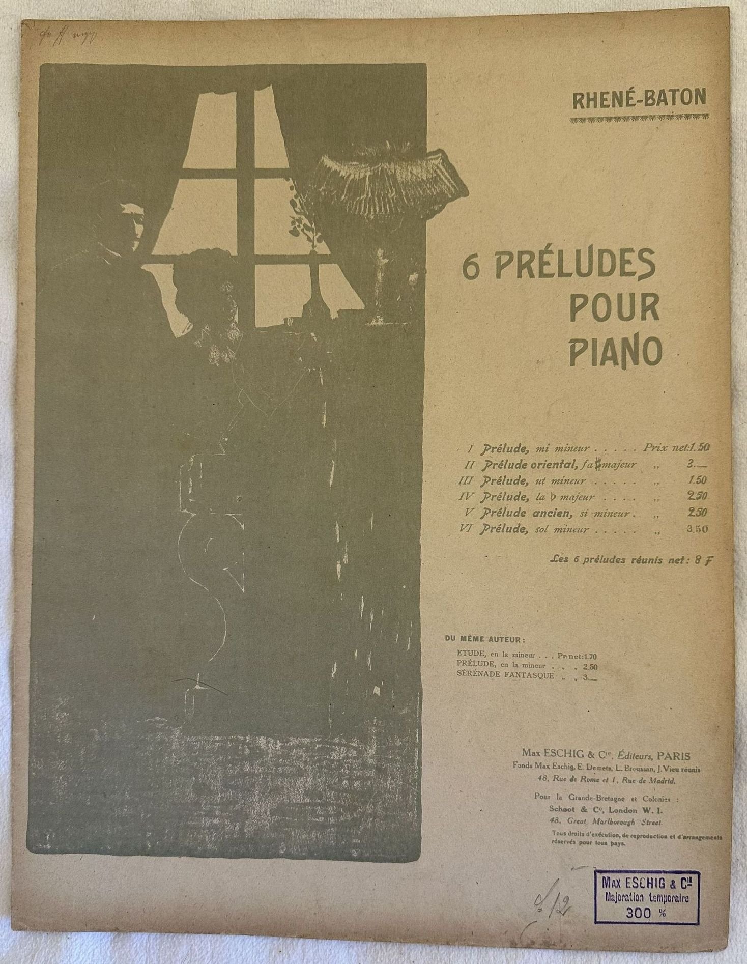 Edizione dei primi del novecento della melodia "Prelude oriental" del compositore francese Rhene Baton (1879-1940). In buone condizioni. Copertina editoriale in buone condizioni con lievi usure marginali. Legatura editorialmente assente. Pagine in buone condizioni con fioriture. In folio. cm. 34,5x26,5. Pp. 8.Edition of early 20th century of the melodiy "Prelude oriental" by the french composer Rhene Baton (1879-1940). In good conditions. Editorial cover in good conditions lightly worn in the extremities. Binding is editoriarly missing. Pages in good conditions with foxing.In folio. cm. 34,5x26,5. Pp. 8.
