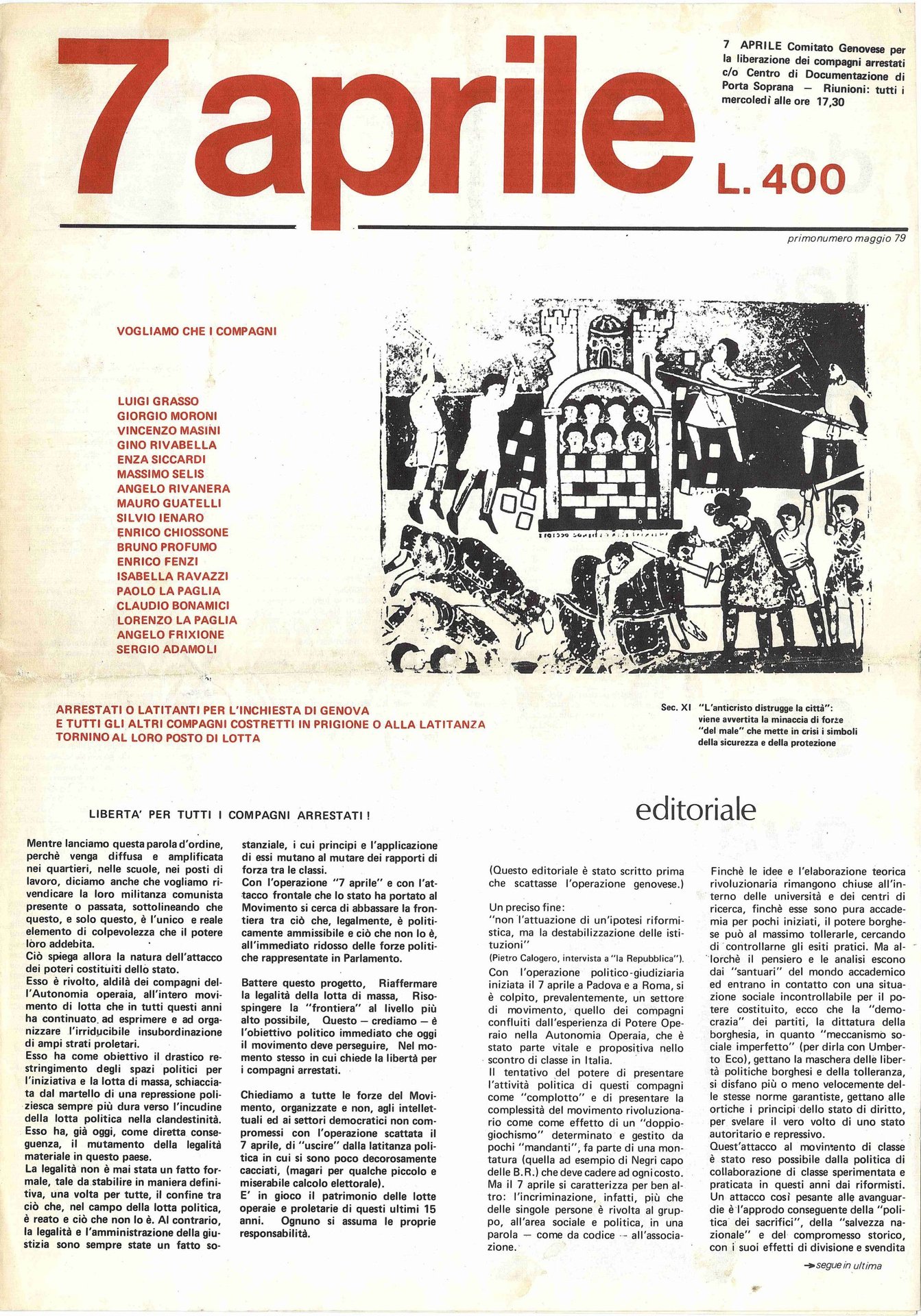 - (7 Aprile) Comitato Genovese Per La Liberazione Dei Compagni Arr