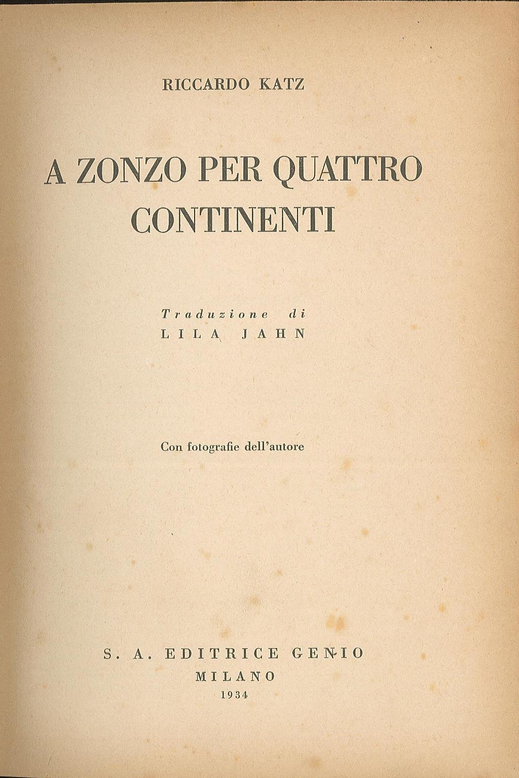 A zonzo per quattro continenti | Rare and modern books | Katz Riccardo, Katz Riccardo